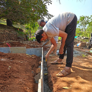 The task was tangible and urgent. Our campsite sits on a hill, and for campers to sleep comfortably, they need a flat surface. We identified a patch of land roughly 45 feet long and 12 feet wide. The goal: transform this rugged slope into two level, defined sections using Shahbad stone tiles as the boundary.